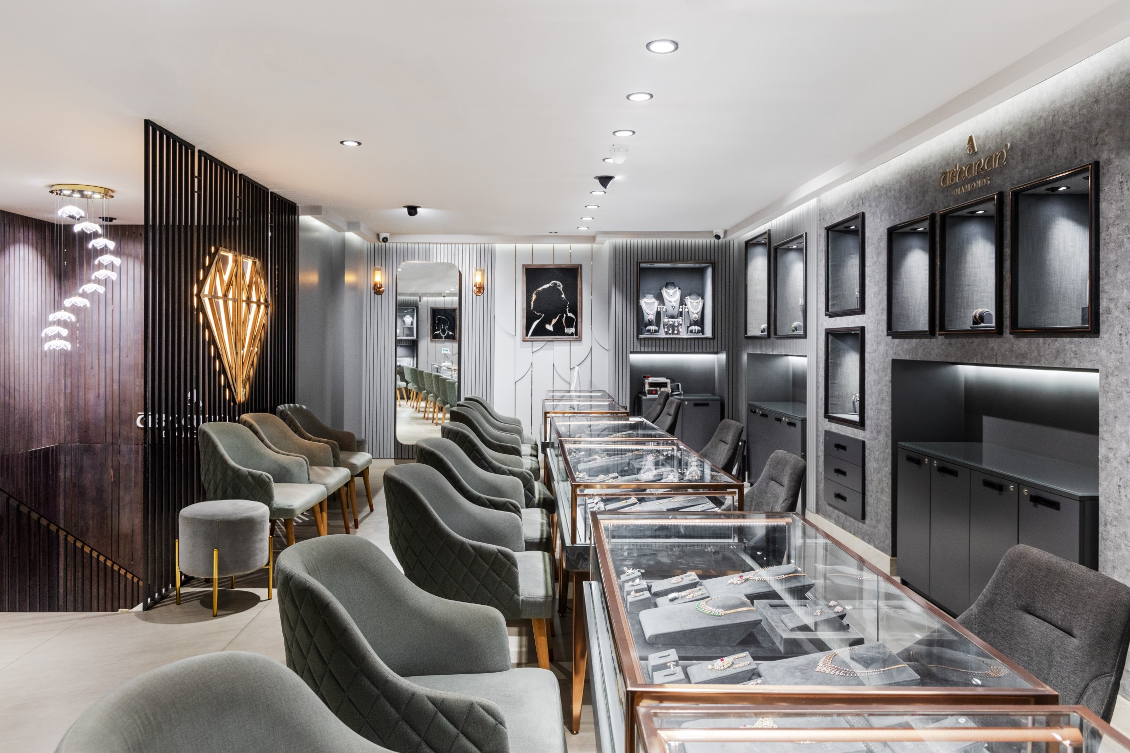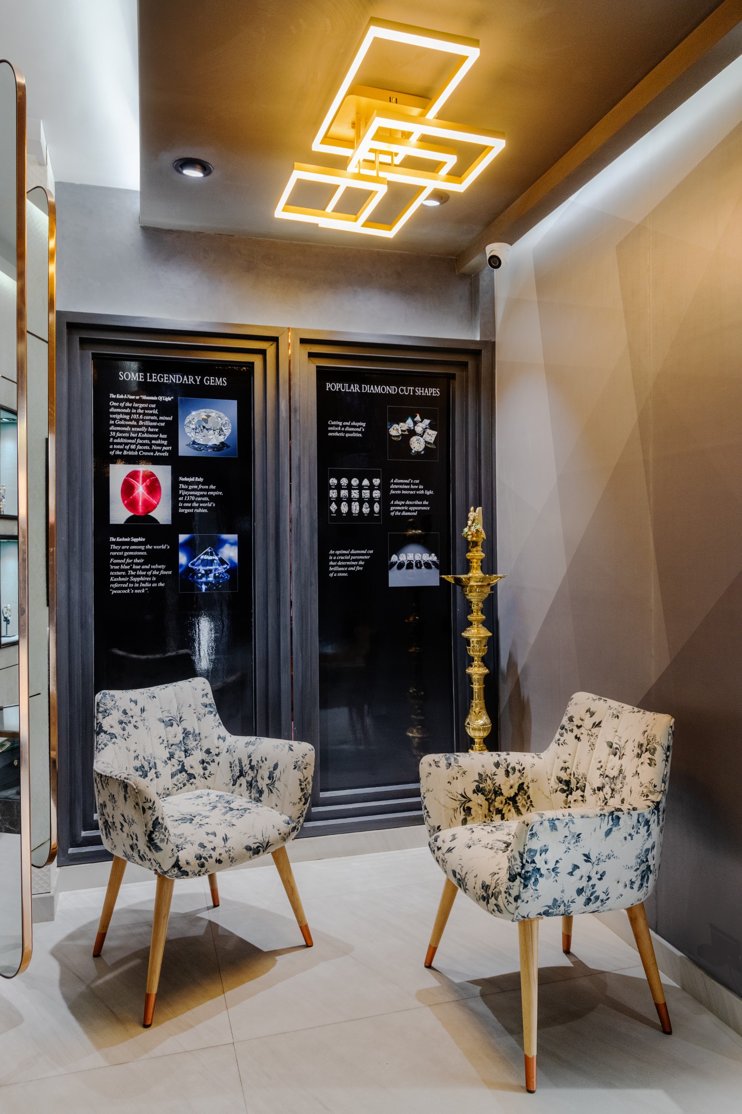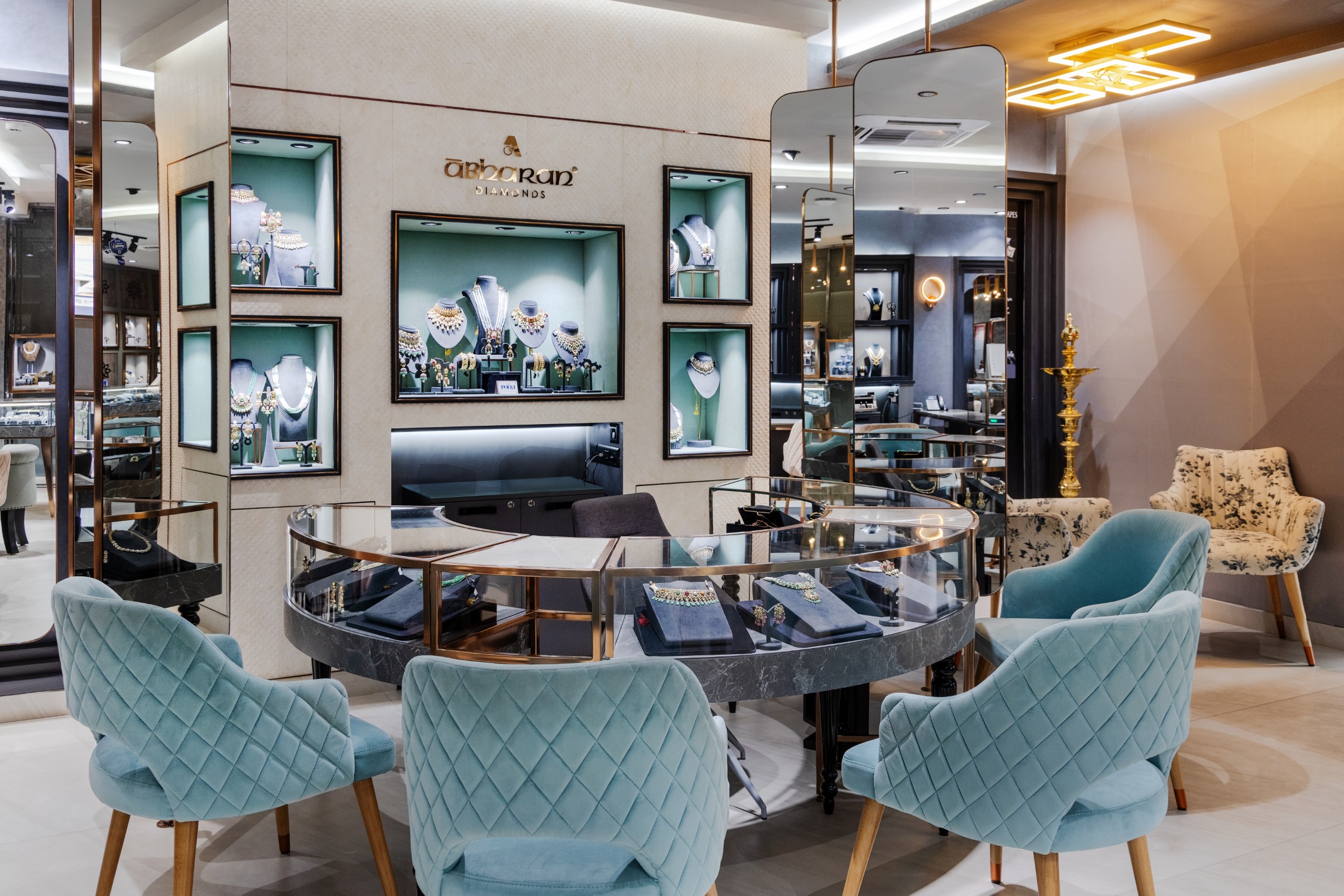 Every nook in the store has been detailed to match and compliment the intricacy and brilliance of diamond cuts. The owners who have been in this business through generations, had a clear vision on what the store should represent, and this helped in creating this glamorous yet artsy boutique.