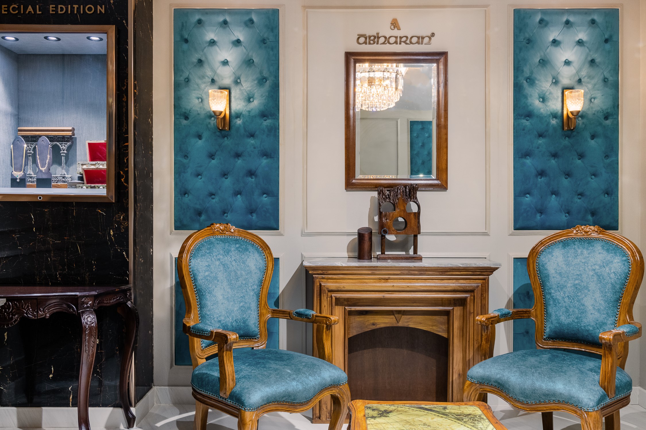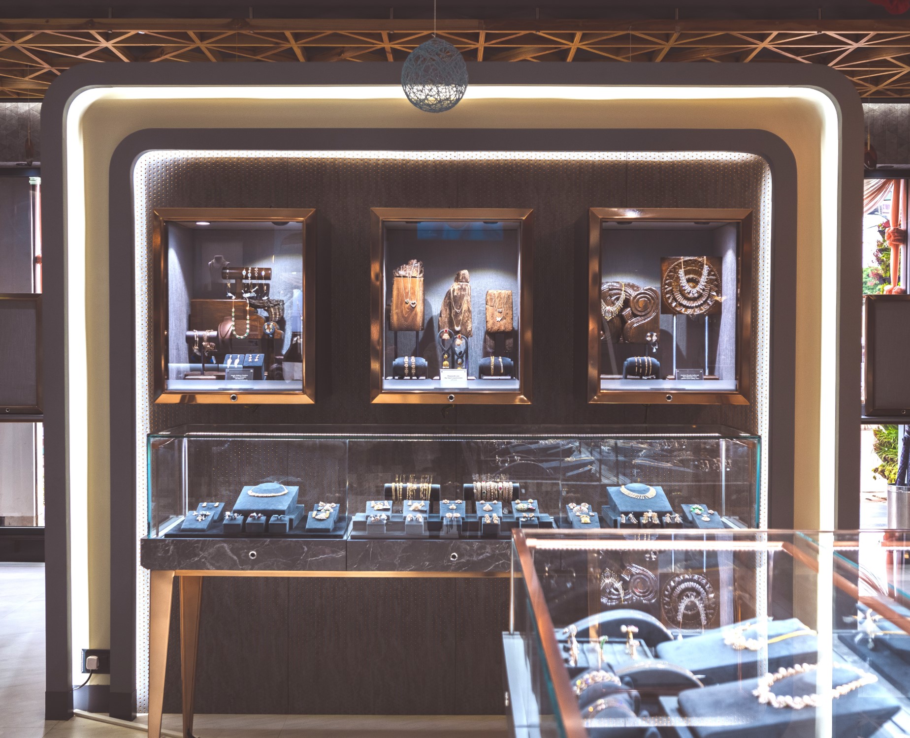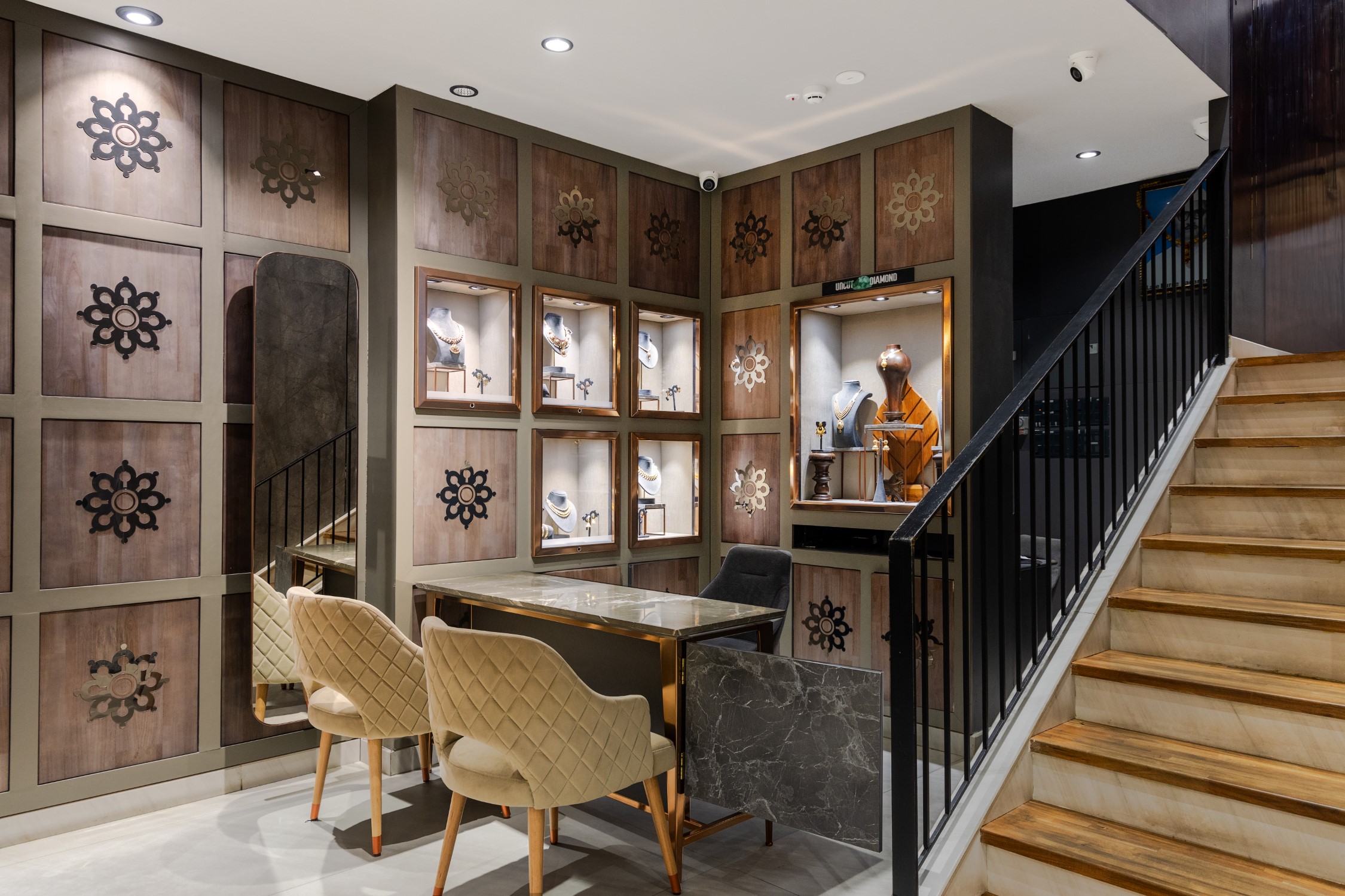 Every nook in the store has been detailed to match and compliment the intricacy and brilliance of diamond cuts. The owners who have been in this business through generations, had a clear vision on what the store should represent, and this helped in creating this glamorous yet artsy boutique.