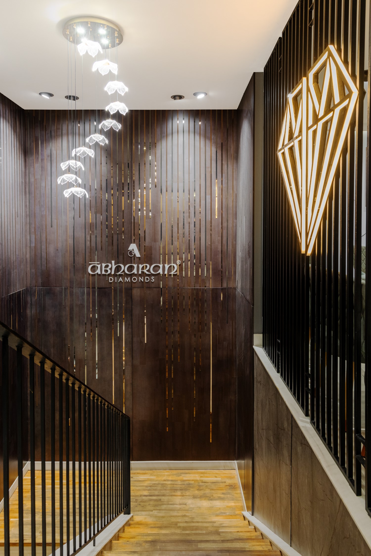 Abharan Jewellers is one of the finest jewelers from the temple town of Udupi, that was established in the year 1935. With several stores across Karnataka and Goa, Abharan now has launched flagship diamond store in Udupi, with a dazzling boutique with state-of-the-art lighting and display. This is a new concept compared to the conventional gold marts of yester years. Abharan Diamonds is spread across 2500 SFt in 2 levels. The store design organically evolved from several interactions with the owners, each session comprising of virtual walk-throughs during which every detail was reviewed, deliberated, and finalized.